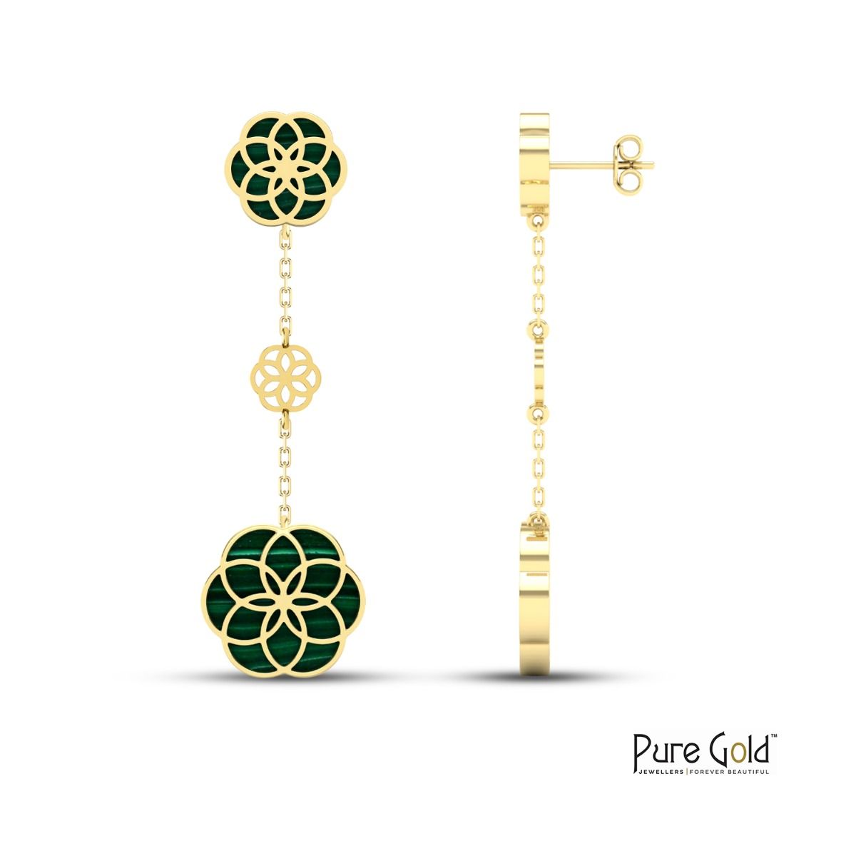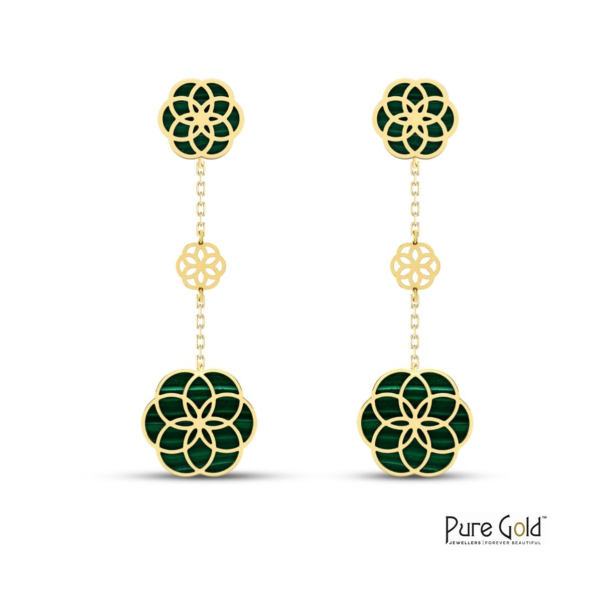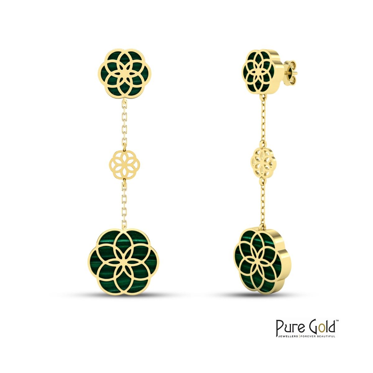 Indulge in luxury with the 18 Karat Gold Luciana Malachite Earrings. These stunning earrings are crafted from high-quality materials and feature a beautiful combination of 18-karat gold and malachite. The malachite stone is a deep green color with unique striations, making each pair of earrings one-of-a-kind. With 5.55 grams of gold and 10.90 carats of malachite, these earrings are sure to make a statement. Whether you're dressing up for a special occasion or adding a touch of elegance to your everyday look, the 18 Karat Gold Luciana Malachite Earrings are the perfect choice.