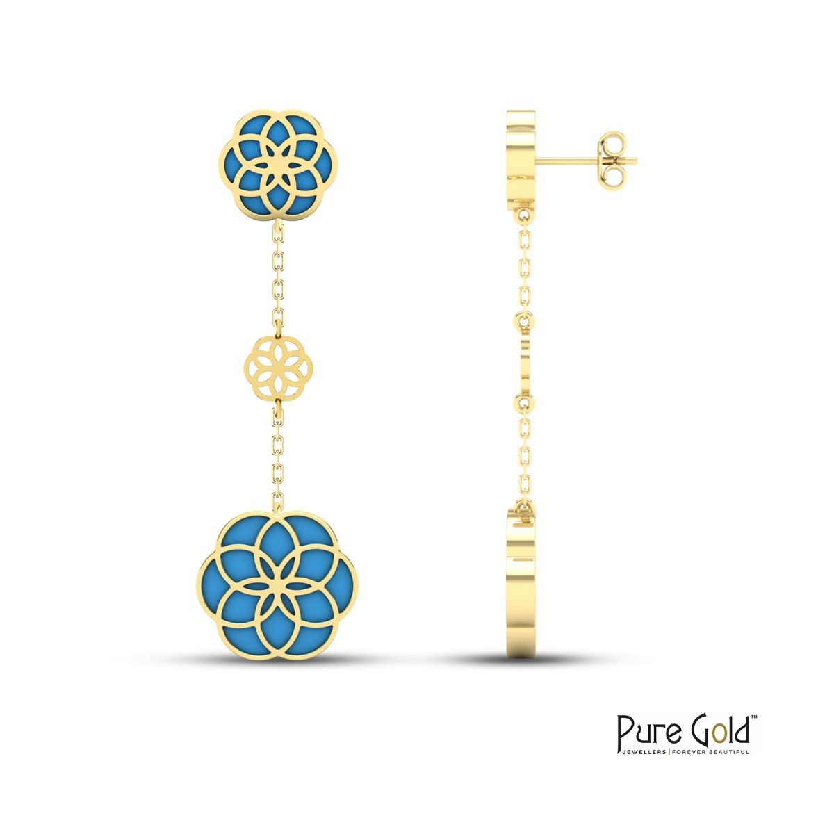 Sparkling like a piece of the tropics, the 18 Karat Gold Luciana Turquoise Earrings bring a touch of paradise to your look. These captivating earrings feature stunning turquoise gemstones, their vibrant blue hues reminiscent of cool lagoons. Delicately set in gleaming 18 karat gold, the earrings offer a touch of timeless elegance with a burst of summery color. Embrace the refreshing beauty of the Luciana Turquoise Earrings and let them be your reminder of endless possibilities.