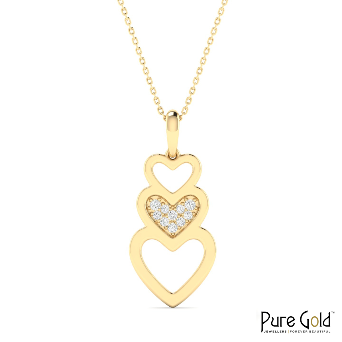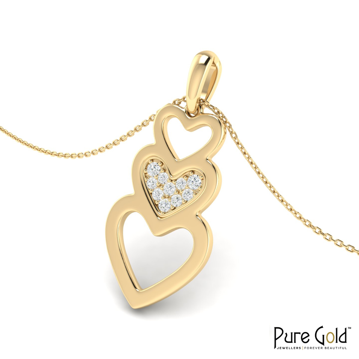 Celebrate love in perfect harmony with the Symphony of Hearts Pendant with chain from Pure Gold Jewellers. Crafted in 18 karat gold, this elegant piece features a timeless design that intertwines delicate hearts, symbolizing unity and affection.