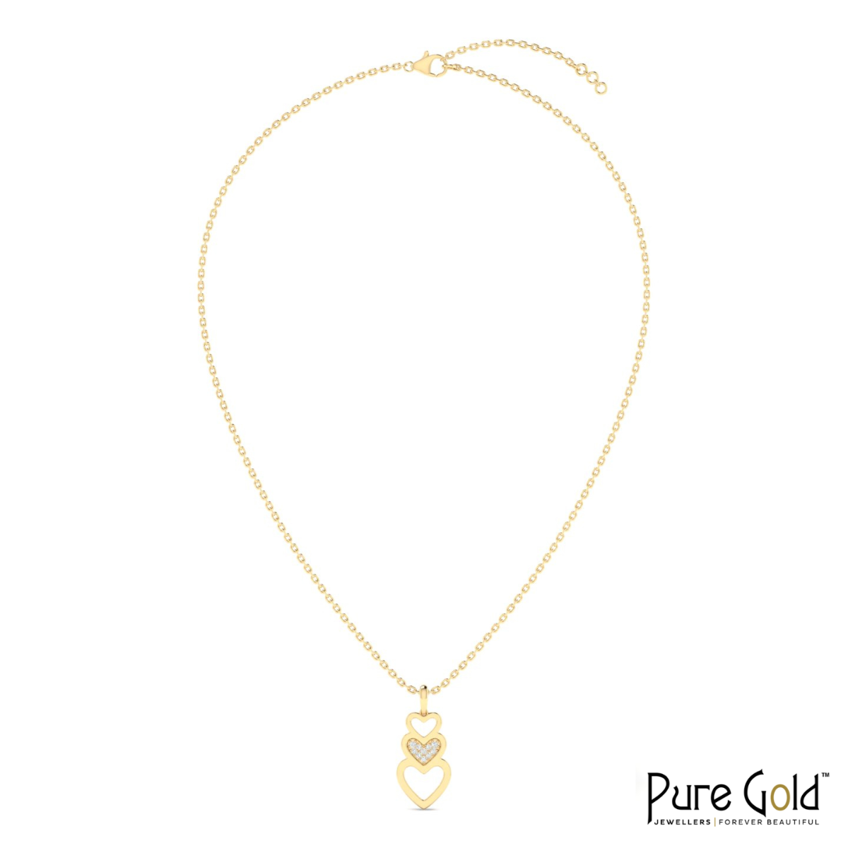Celebrate love in perfect harmony with the Symphony of Hearts Necklace from Pure Gold Jewellers. Crafted in 18 karat gold, this elegant piece features a timeless design that intertwines delicate hearts, symbolizing unity and affection.
