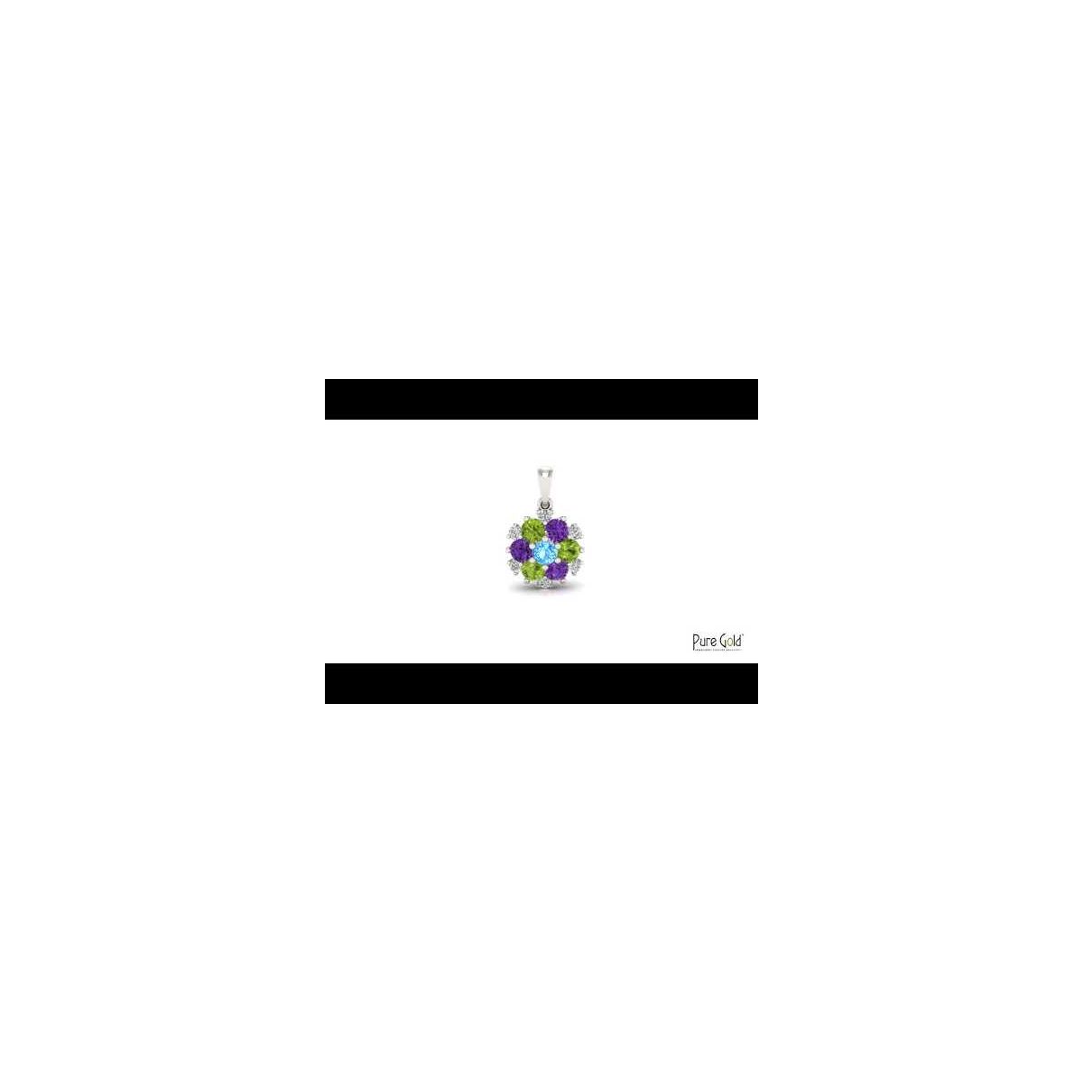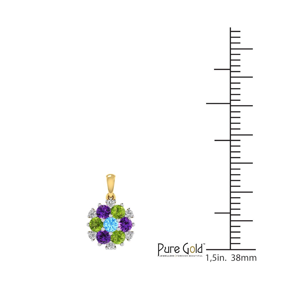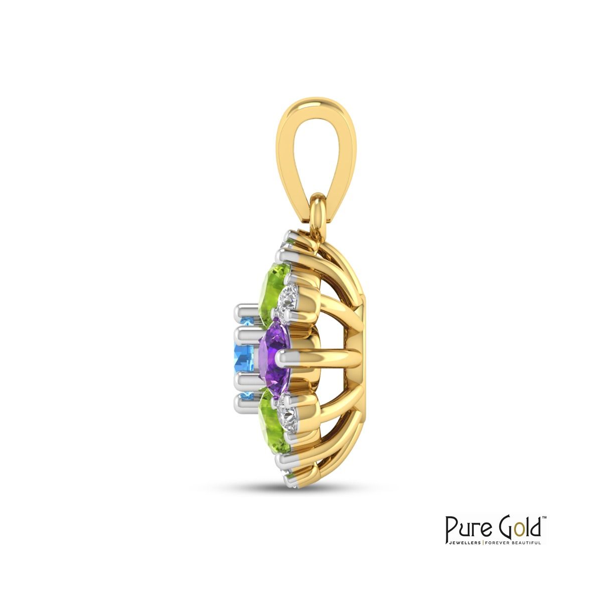 Unveil your inner mystery with the captivating 18K Gold Mystical Triad Pendant. This stunning piece features a mesmerizing cluster of amethyst, blue topaz, and peridot gemstones, each one sparkling with brilliance. A delicate 0.05 carat diamond adds a touch of sophistication, making this pendant the perfect accessory for any occasion. Whether you're dressing for a night out or adding a touch of elegance to your everyday look, the 18K Gold Mystical Triad Pendant is sure to turn heads.