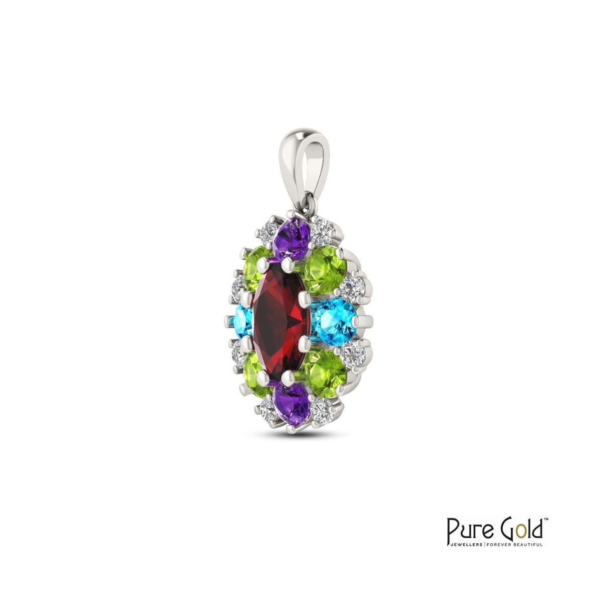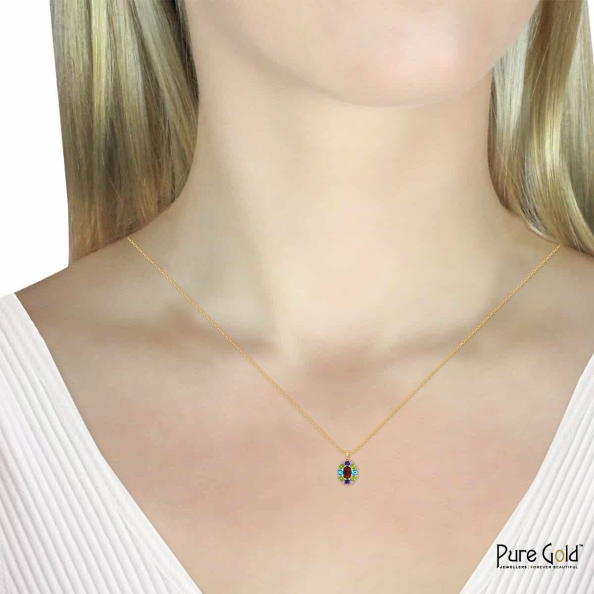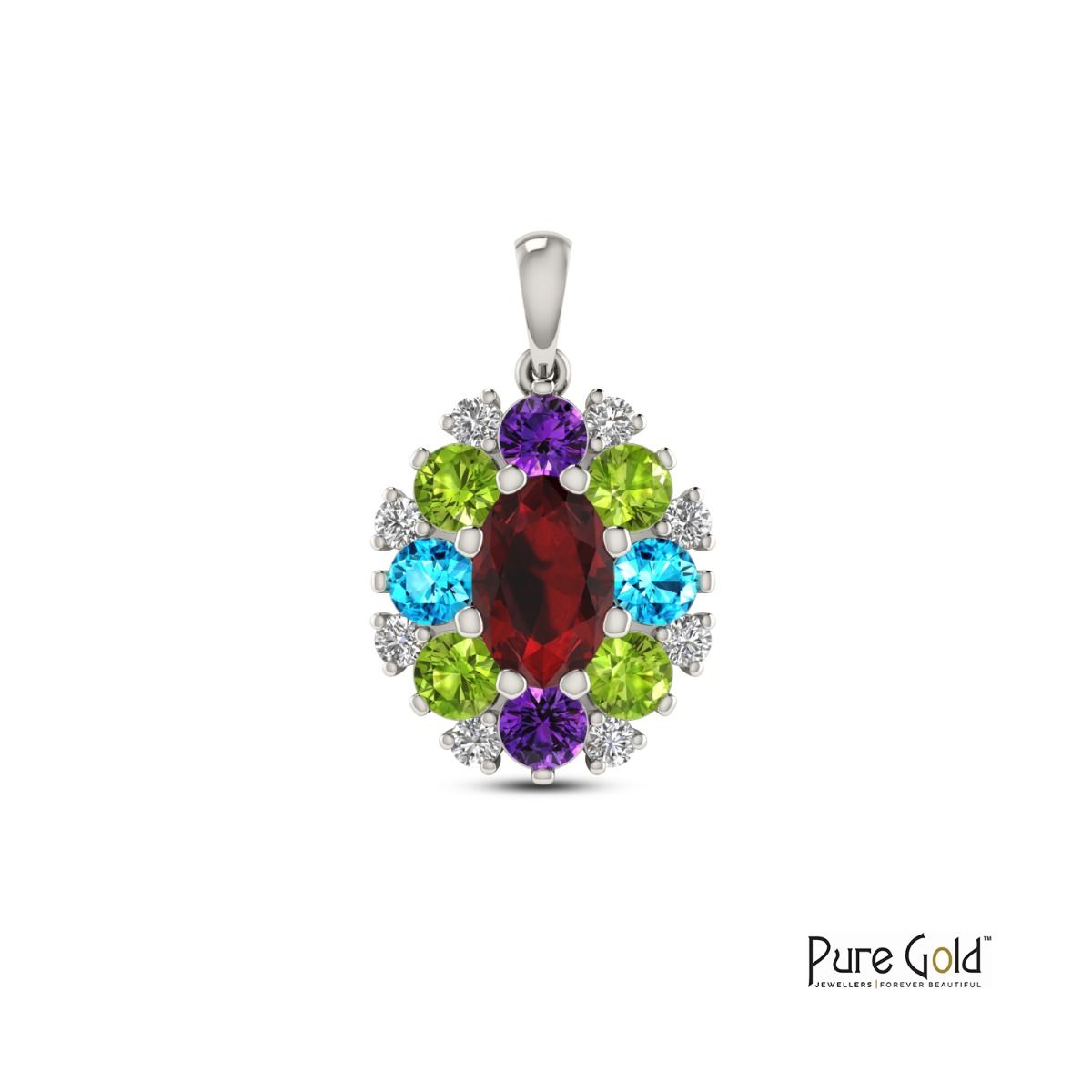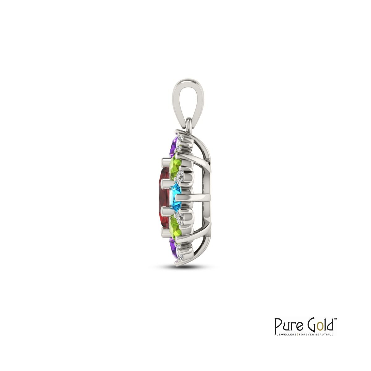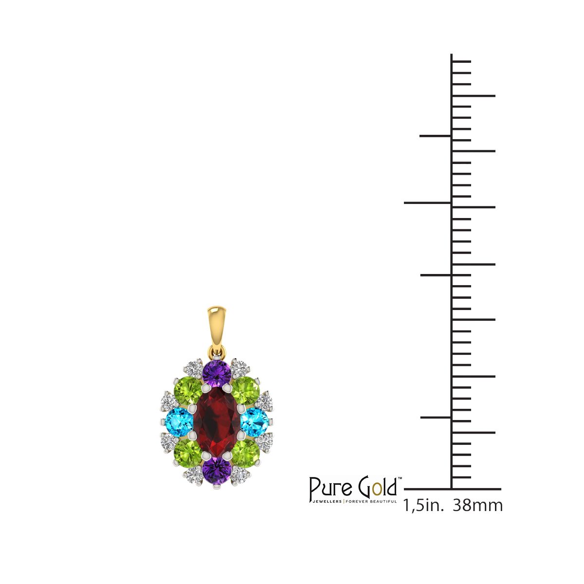 Experience the mesmerizing "Radiant Harmony Pendant," handcrafted in luxurious 18K gold. This exquisite piece features a captivating symphony of colorful gemstones - Amethyst, Blue Topaz, Citrine, Garnet, and Peridot - alongside sparkling diamonds (0.10 CTS). Each stone plays its part in a dazzling display of brilliance, creating a perfect harmony of light and color. The "Radiant Harmony Pendant" is a timeless treasure that will add a touch of magic to any outfit.