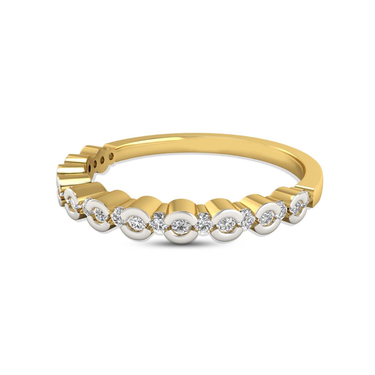 Enchant your fingers with the mesmerizing 'Dancing Diamonds Ring.' This elegant ring is crafted in exquisite 18k gold and features a captivating row of 23 shimmering diamonds, each weighing 0.20 carats. These diamonds are meticulously set to create a mesmerizing dance of light. The interplay of the diamonds and the warm glow of the gold band will mesmerize onlookers, making this ring a true statement piece exuding timeless beauty and sophistication. Whether for a special occasion or an everyday indulgence, the 'Dancing Diamonds Ring' will elevate your style and leave a lasting impression.